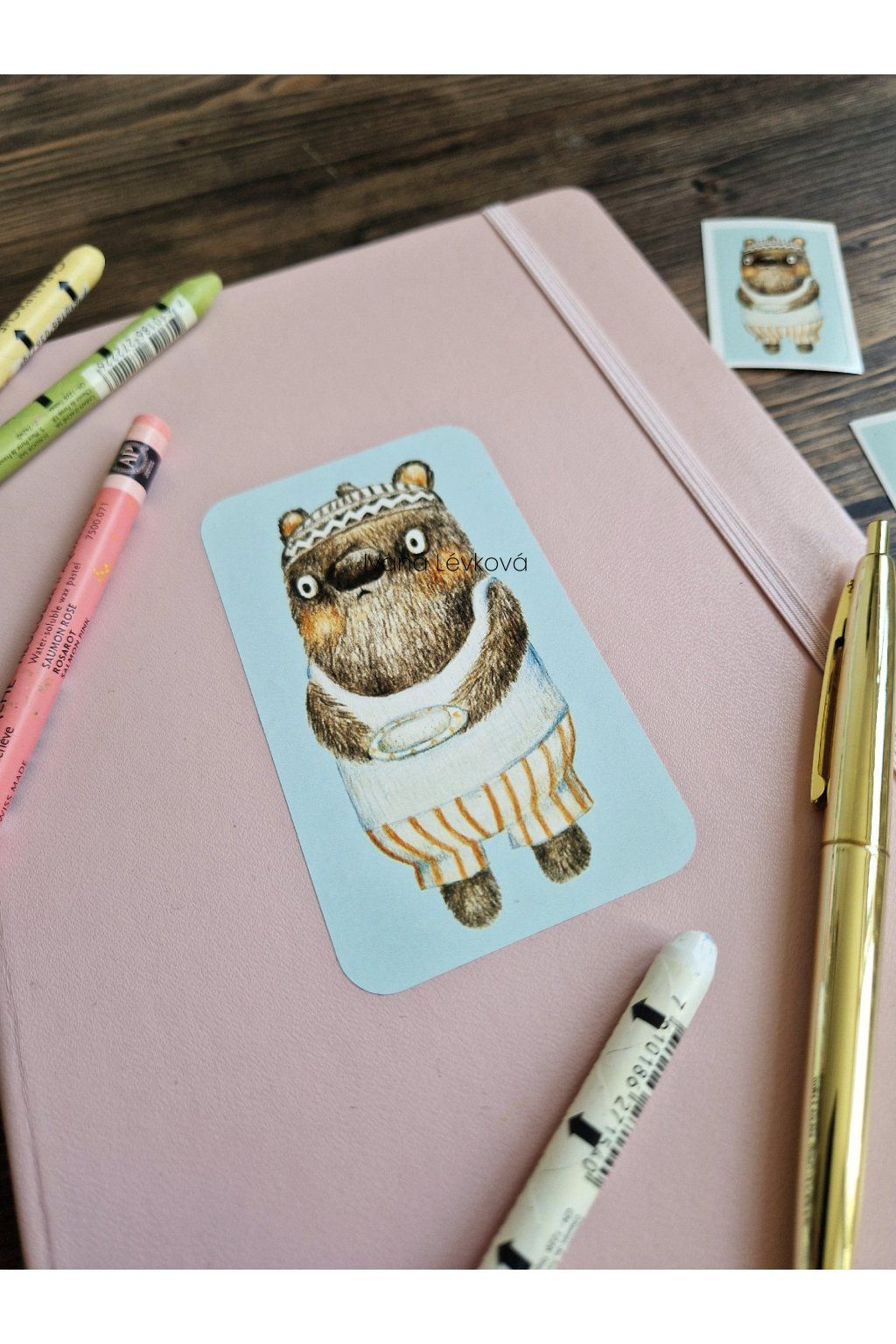 Původní kresba pastelkou.